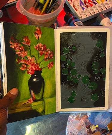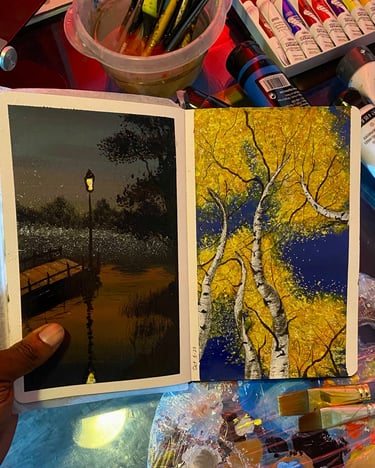 Landscapes, abstractions, figurative explorations - learning how different materials think, how paint moves, what color can do.