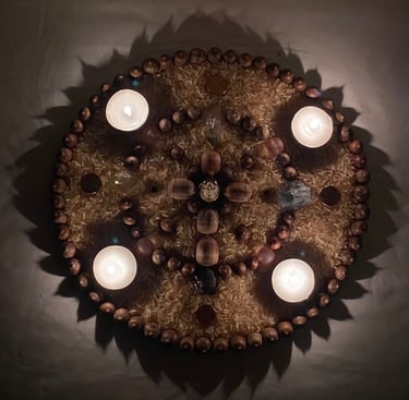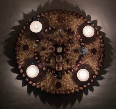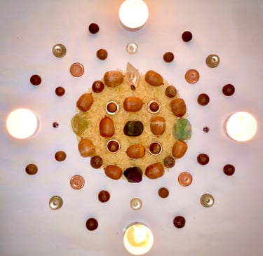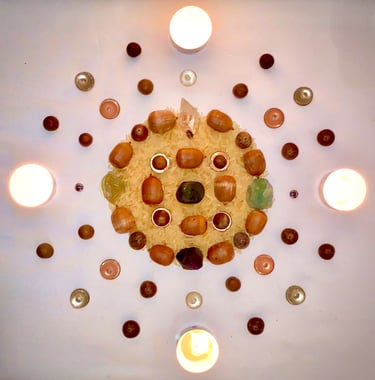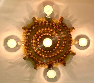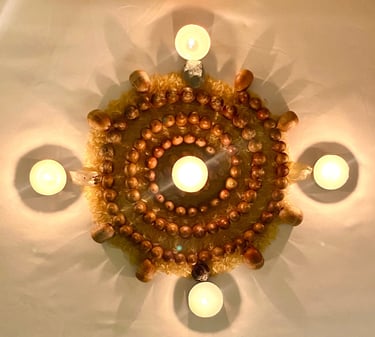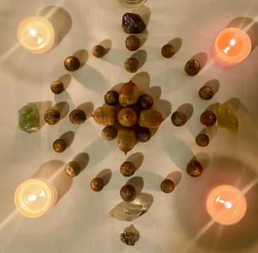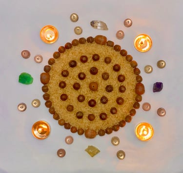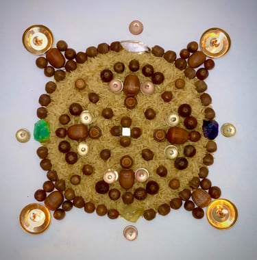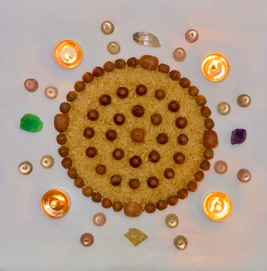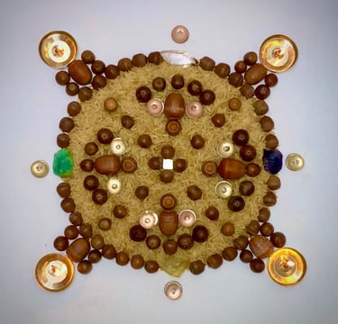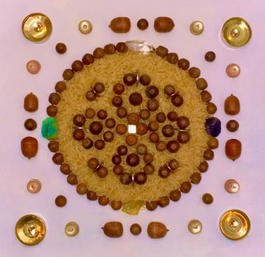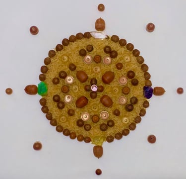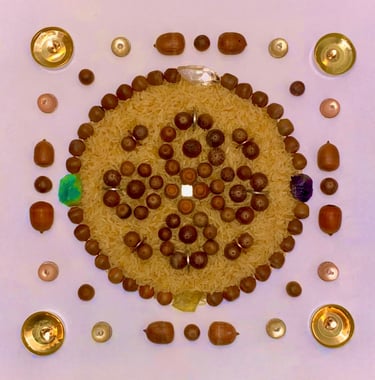 After a personal crisis, I needed to put something back together. I started arranging natural materials - acorns, rice, stones - into geometric patterns. Each piece existed only long enough to be photographed before being dismantled.